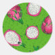 Rote Drachenfrucht auf Grün Runder Aufkleber