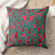 rote Dreiecke auf einem dunkeltürkisfarbenen Hinte Kissen