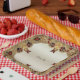 Rote Edelsteinplatte für goldene Blume Pappteller