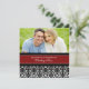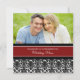 Kundenspezifische Fotoeinladungen der eleganten Hochzeitsversprechen-Erneuerung im Rot, Schwarzweiss-Blumendamastmuster mit völlig kundengerechtem Text, Ihre Versprechenerneuerungs-Zeremoniedetails einzuschließen.