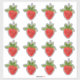 Die hellrote Erdbeere mit grünem Blatt wird vor einem weißen Hintergrund dargestellt, der ihre lebendige Farbe auf dem Aufkleber betont.