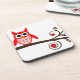 Rote Eule auf Kirschbaum Getränkeuntersetzer