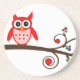 Rote Eule auf Kirschbaum Getränkeuntersetzer