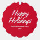 Erstellen Sie Ihr eigenes Foto für den Urlaub mit einem rot-weißen Happy Hoidays Gruß auf der Rückseite. Sie können sowohl Schriftart-Stile, Farben und Größen nach Bedarf für Ihre Familie anpassen. Sie können die rote Hintergrundfarbe an Ihre Urlaubsstimmung anpassen.