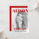 Rot fett Typografie Class of 2025 Graduation Party Foto Einladung. Diese Einladung zur Abschlussveranstaltung der Klasse 2025 zeigt eine lebendige rote Typografie, die sich herausstellt. Die Vorderseite der Einladung hat ein zeitgenössisches Design mit einem personalisierten Foto des Absolventen und ihren Namen. Auf der Rückseite finden Sie alle wichtigen Details über das Party, eine Graduierungs-Cap-Illustration und eine stilvolle schwarze Grenze, die dem Gesamtbild eine elegante Touch verleiht.