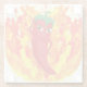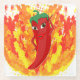 Ein roter und scharfer Pfefferkarikaturencharakter. Originelles Design mit Flammen im Hintergrund. Benutzerdefinierte Untersetzer. Für alle Feste können Sie sich vorstellen! Geschenkidee für würzige Fressliebhaber.