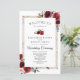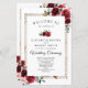Die Einrichtung besteht aus Rose in sanften Rottönen, begleitet von eukalyptus botanischer Vegetation. In Kombination mit einem blassgelben Rahmen schafft es ein eleganteres und höfliches Layout. Die Typografie zeigt ein modernes Layout mit schwarzem Text.