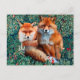 ROTE FOXE UNTER GRÖSSE, FOLIAGE UND BLUME POSTKARTE