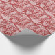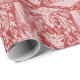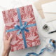 Ein rotes gestempeltes Design, in dem Maria, Joseph und Baby Jesus in der Wut unter einem hellen Stern vor einem strukturierten roten Hintergrund stehen.