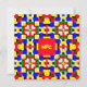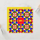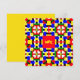 Farbige rote, gelbe, blaue und grüne geometrische Notenkarte. Das rote Rechteck kann entfernt werden, die Initialen können geändert werden, die Rückseite der Karte kann gelb geändert werden. Von celeste@khoncepts.com #geometric
