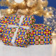 Umhüllungspapier mit farbenfrohen roten, gelben, blauen und grünen Geometrien. Von celeste@khoncepts.com #geometric