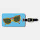 Rote gelbe Sonnenbrille-blauer Gepäckanhänger