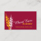 Einfaches modernes Blatt, Stiel, Samenkopf der grafischen Bäckerei der Weizenohren/der Bäcker-Visitenkarte in dunkelrotem, hellem warmem Gelbem und im Weiß. Vervollkommnen Sie für Handwerkerbäcker, Spezialistenbäckerei und andere kochende und backende Fachleute. Personifizieren Sie mit Ihren Firmennamen-, Dienstleistungs-, Adressen- und Kontaktdetails. Entwurf und Grafik durch Sarah Trett.