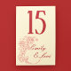 Rote Geranien auf Beige Hochzeit Tischnummer