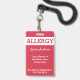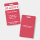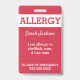 Rote Gewohnheit scherzt Nahrungsmittelallergie-Alarm-rotes warnendes Abzeichen. Befestigung über eine Abzugsleine, ein Metallclip oder ein einziehbares Klipp zu einer Buchtasche, zu einer Medizinausrüstung oder damit ein Kind trägt. Fertigen Sie mit Ihren Allergien, Kontaktinfo oder Notanweisungen besonders an. Redigieren Sie, um Schriftart- und Hintergrundfarben oder Textart zu ändern. Info kann auf Front oder Rückseite geschrieben werden. www.LilAllergyAdvocates.com