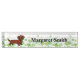 Niedlicher roter glatter behaarter Dackelwelpe betrachtet Sie mit Twinkleaugen. He/she hat ein Kleeblatt verlässt in seinem/Mund. Ein wenig von den Iren. Heitre und launische und lustige Hundekunst geschaffen von Naomi Ochiai von Japan. Niedlicher Dackel-Cartoonentwurf für Hundeliebhaber die Liebe Dackel!! Vierblättriges Kleeblatt Muster.
