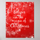 Rote Glitzern mit Weihnachts-Zauberspruch. Feierliche funkelnd Feiertage mit beigen Akzenten und weißen Elementen bilden den Rahmen dieses inspirierenden Weihnachtsziels, "glauben Sie an die Magie der Weihnachtszeit".