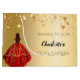 Ein goldfarbenes Imitat mit Sternen und ein Mädchen mit einem Tiara und einem roten Kleid. Personalisieren und hinzufügen von Namen, Datum.