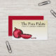 Flüchtige rote Granatapfelgeschäftskarten für die persönlichen oder privaten Köche, die Bäcker und anderes kochendes oder backendes Geschäft. Runde Himbeerenganze und geschnittene rote poms mit Samen auf einem rauen Leinenmusterhintergrund.