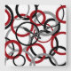 Rote, graue und schwarze Kreise Quadratische Wanduhr