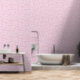 Rote grüne Falten mit Regenbogen, auf hellrosa Tapete