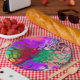 Rote, grüne, Lila, farbenfrohe digitale Fluid Art Pappteller