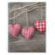Rote Herzen auf hölzerner Tabelle Notizblock