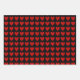 Ein Set von drei dekorativen 19x29"-Packpapieren: ein gemustertes Blatt mit einem Muster hellroter Valentinherzen auf einem raffinierten, soliden, schwarzen Hintergrund mit Jet-Jet und Valentinrot, schwarze Blätter für anspruchsvolle Geschenkkollektionen und Projekte für Gabelkunst
