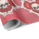 Dieses Packpapier hat ein abstraktes Muster in roten Sternenstern mit roten Herzen, die mit weißen Knochen mit Schädeln in der Mitte des Herzens umrissen sind.