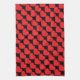 Dieses Küchentuch weist formschöne rote Herzen auf schwarzem Hintergrund auf.