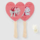 Dieses originelle Fandesign hat eine lustige zynische Touch, aber Sie können es auf jede Art und Weise personalisieren, zu der Sie gewollt haben. Die beiden roten Herzen sind mit einem weißen Schleifenbogen verbunden, die Liebe Bild ist Set vor einem klebrigen rosa Hintergrund, das gleiche Bild ist auf der Rückseite des Lüfters. Es ist ein einfaches Hochzeitskonzept, das von Paaren geschätzt wird, die nicht gewollt haben, für ihren großen Tag "über die Spitze" zu gehen, aber dennoch gewollt haben, ihren Gästen etwas zu geben, um als Hochzeitssouvenir behalten. Ein Fan ist etwas Nützliches, das alle wichtigen Hochzeitsinformationen enthalten kann und Sie gleichzeitig cool behalte, auch wenn es in "kann nicht gestört werden" Farben ist!