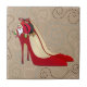 prächtige, heiß-rote High-Heel-Schuhe/Pumps mit einem sehr niedlichen Santa Elf, der an einem Schuh wie einem Weihnachtsschmuck hängt