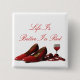 Rote High Heel Schuhe und Roter Wein Button
