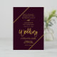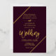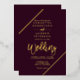 Goldene Typografie auf Pflaumenrot und goldene geometrische Streifen, perfekt für eine elegante, schicke Hochzeit,