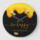 Ein schicker schwarzer Hintergrund mit goldtropfendem Honig. Der Text: Bee Happy mit einem goldenen handgeschriebenen Stil Skript mit Swashes. Personalisieren und fügen Sie Ihren Namen, Familiennamen.