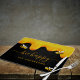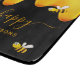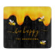 Ein schicker schwarzer Hintergrund mit goldtropfendem Honig. Der Text: Bee Happy mit einem goldenen handgeschriebenen Stil Skript mit Swashes. Personalisieren und fügen Sie Ihren Namen, Familiennamen.