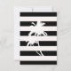 Tropisches Strandthema für die Partys am Zuhause, am Strand oder für ein Party am Pool. Klassische, schwarz-weiße Streifen im nautischen Stil. vorne: Drei rote Hummer. Vorlagen für Ihren Text. Hinter dem Hotel stehen schwarz-weiße Streifen und abstrakte, weiße Palmen