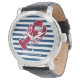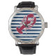 Rote Hummer Monogramm Blauer Streifen Armbanduhr