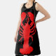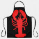 Roter Hummer auf einer Koch-Schürze mit schwarzem Hintergrund.