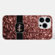 Personalisieren Sie Imitate funkelnd mädchenhafte iPhone Gehäuse mit Ihrem Initial und Namen. Raffinierte, blendende, schimmernde, lebendige, üppige, reiche, lebendige Rose des Glamours. Schöne glamouröse rötlich erdbraune glänzende Glitzer Glitzern. Foto von Rot-Braun-Glitzern, nicht wirklich Glitzer!
