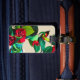 Ein inspiriertes Kunstwerk mit wunderschönem Blumendesign aus einem originalen Aquarellmalereichen mit roten Kamelien-Blume mit grünem Blattwerk der Künstlerin Sacha Grossel. Diese Blume sind farbenfroh, lebendig und hell, und dieses bunte botanische Blumendesign würde in jeder Umgebung wunderschön aussehen. Ein originales Kunstwerk in leuchtenden Farben mit neutralem Beige und individualisierbarem Farbhintergrund.