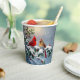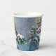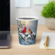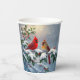 Ein Paar nördliche rote Kardinäle stehen auf einem heiligen Ast mit roten Beeren und Schnee bedeckt.