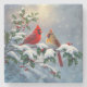 Rote Kardinäle und Holly in Snow Steinuntersetzer