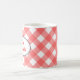 Kundenspezifische Kaffee-Tassen machen Ihren Brautjungfern praktische Geschenke. Diese personalisierte trinkende Tasse kennzeichnet einen Ginghammusterhintergrund mit individuellem Namen oder Text-Set innerhalb eines wulstigen ovalen Rahmens. Der Name wird mit Kirschen selbstverständlich überstiegen. Danken Sie Ihrem Brautparty mit diesen Chickaffee-Tassen.