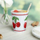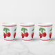 Rote Kirschen auf blauen Streifen Grafikmuster Pappbecher