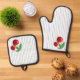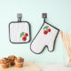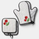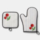 Rote Kirschen auf blauen Streifen Ofenhandschuh & Topflappen-Set