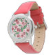 Rote Kirschen auf rosa Gingham Armbanduhr