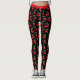 Freuen Sie sich auf farbenfrohe Leggings gemustert mit hellen roten Kirschen auf schwarzem Hintergrund.