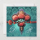 ROTE KORALE ROSE, AQUA BLUE BLACK DAMASK MONOGRAMM EINLADUNG