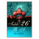 ROTE KORALE ROSE, AQUA BLUE BLACK DAMASK MONOGRAMM TISCHNUMMER